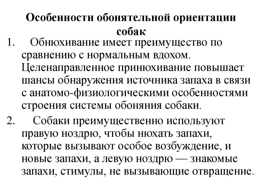 Особенности обонятельной ориентациисобак