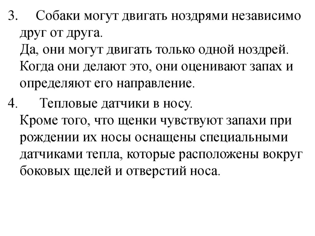 Собаки могут двигать ноздрями независимодруг от друга.