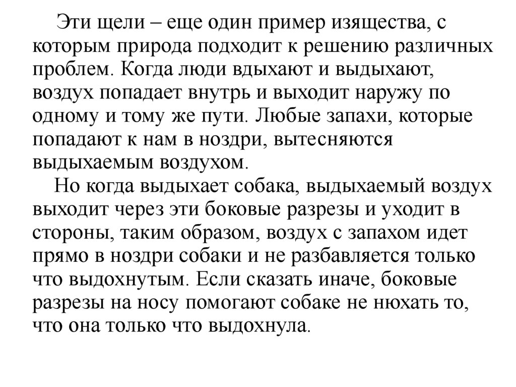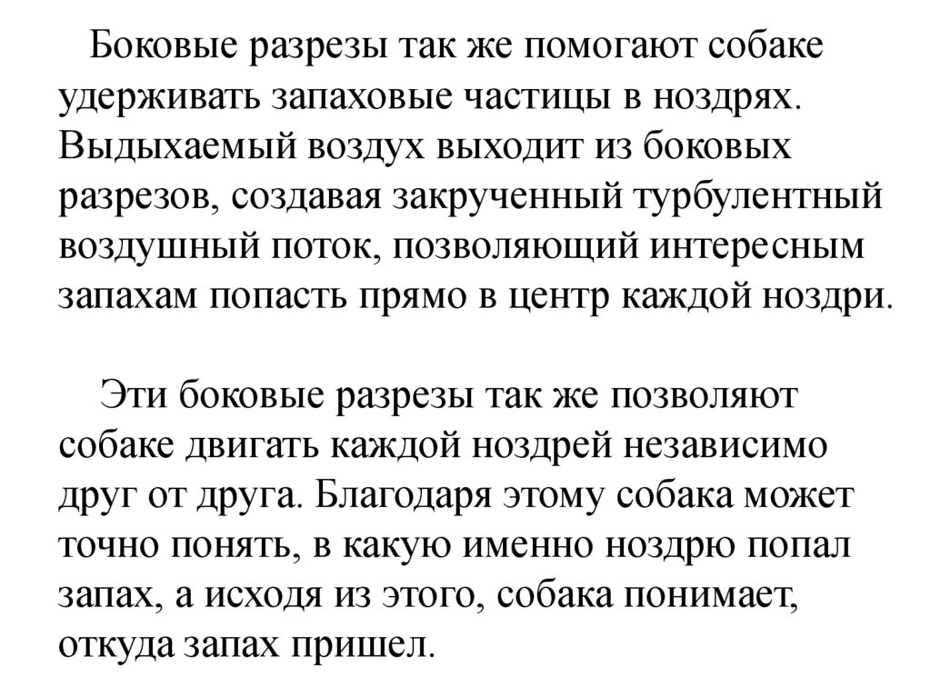 Боковые разрезы так же помогают собакеудерживать запаховые частицы в ноздрях.
