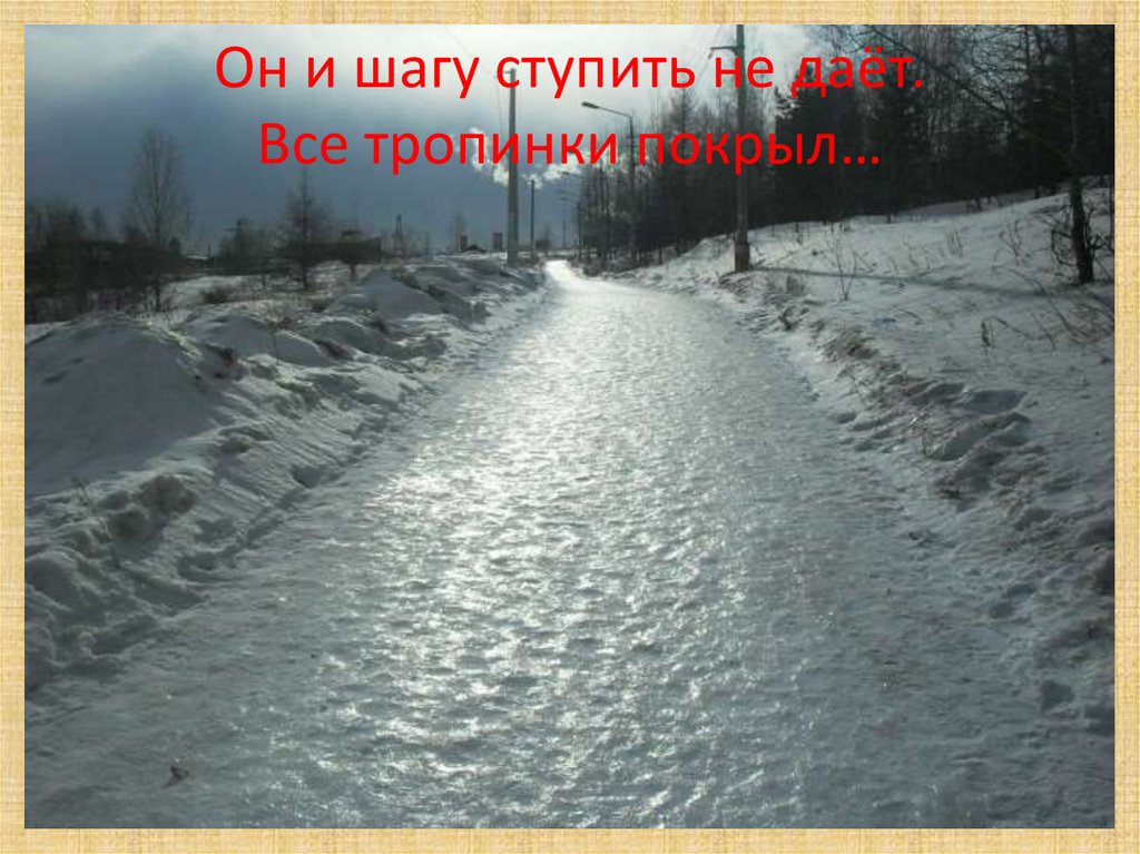 Он и шагу ступить не даёт.Все тропинки покрыл…