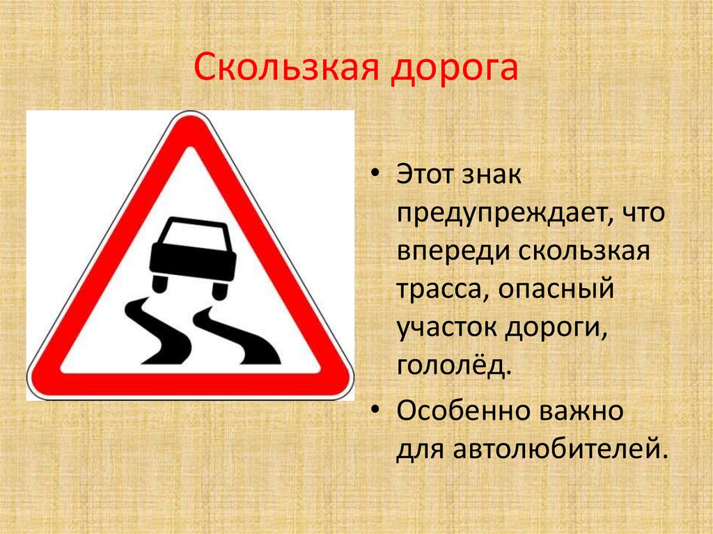 Скользкая дорога• Этот знак