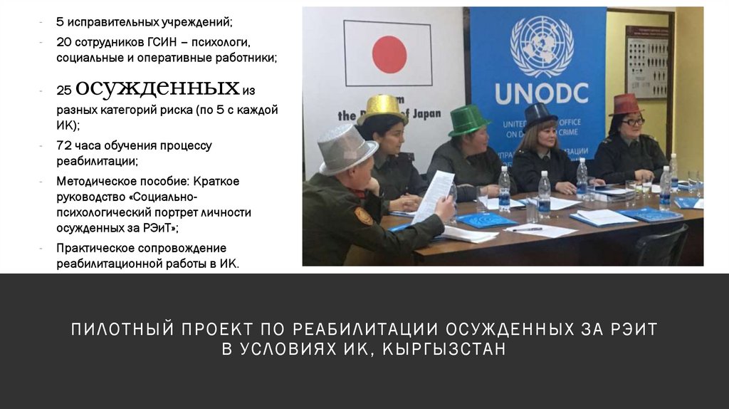 ПИЛОТНЫЙ ПРОЕКТ ПО РЕАБИЛИТАЦИИ ОСУЖДЕННЫХ ЗА РЭИТ