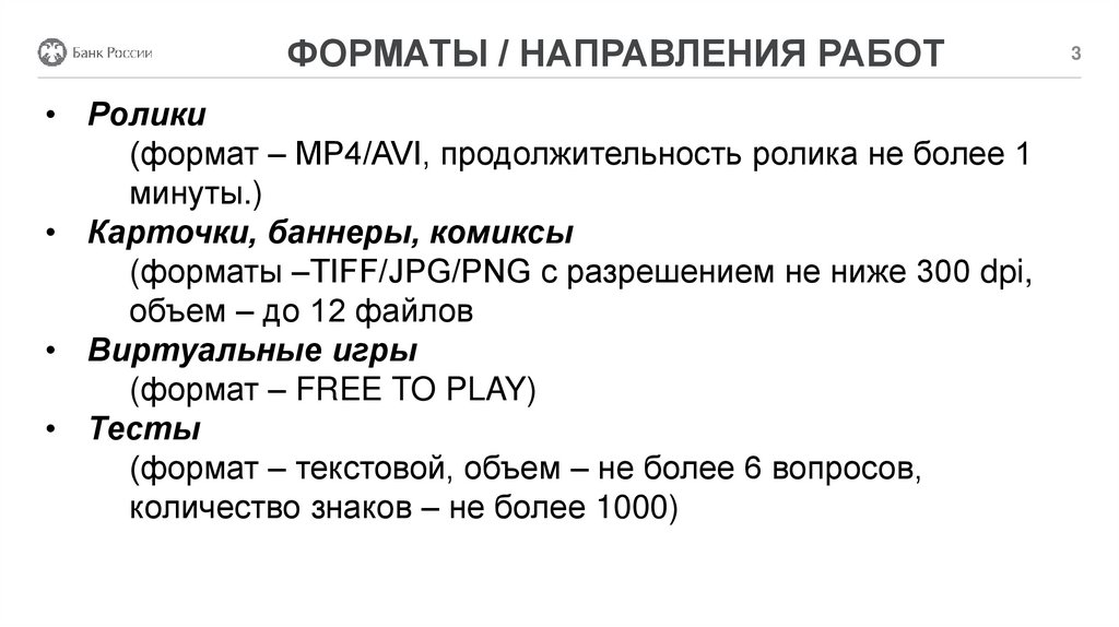 ФОРМАТЫ / НАПРАВЛЕНИЯ РАБОТ• Ролики