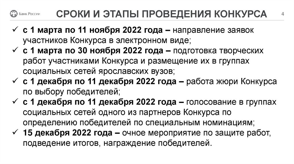 СРОКИ И ЭТАПЫ ПРОВЕДЕНИЯ КОНКУРСАс 1 марта по 11 ноября 2022 года – направление заявок