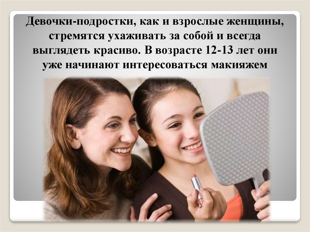 Девочки-подростки, как и взрослые женщины,стремятся ухаживать за собой и всегда