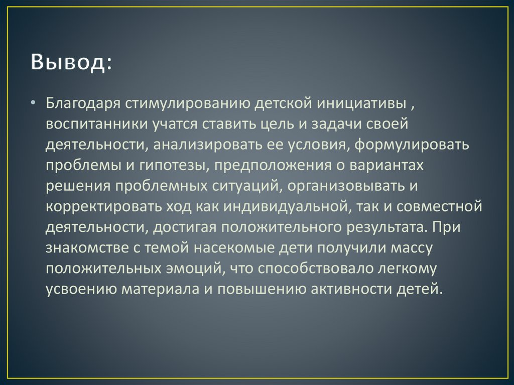 • Благодаря стимулированию детской инициативы ,воспитанники учатся ставить цель и задачи своей