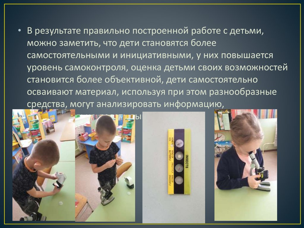 • В результате правильно построенной работе с детьми,можно заметить, что дети становятся более