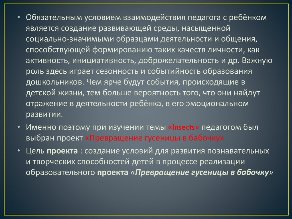 • Именно поэтому при изучении темы «Insects» педагогом был