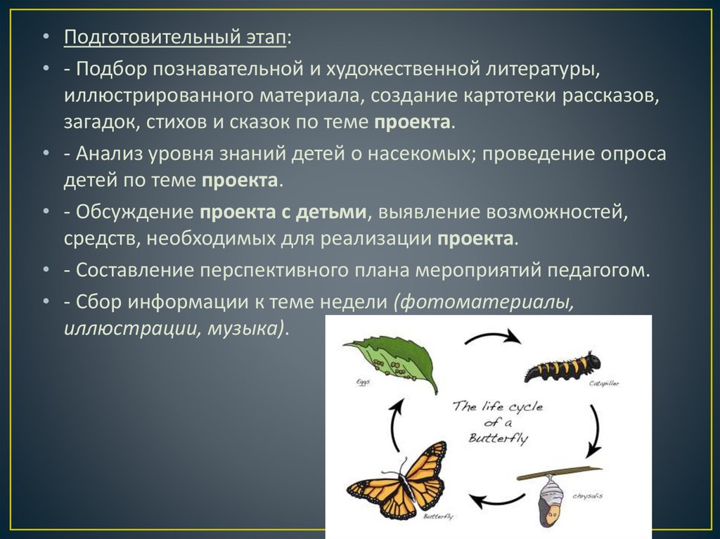 выбран проект «Превращение гусеницы в бабочку»