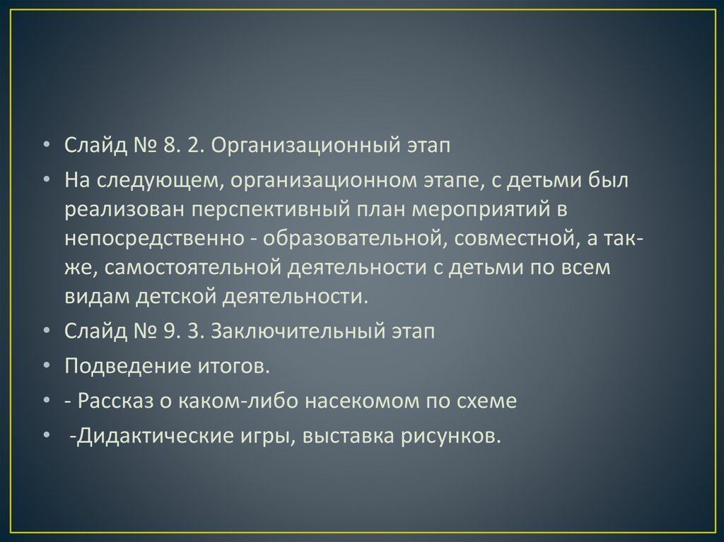 • Слайд № 8. 2. Организационный этап• На следующем, организационном этапе, с детьми был