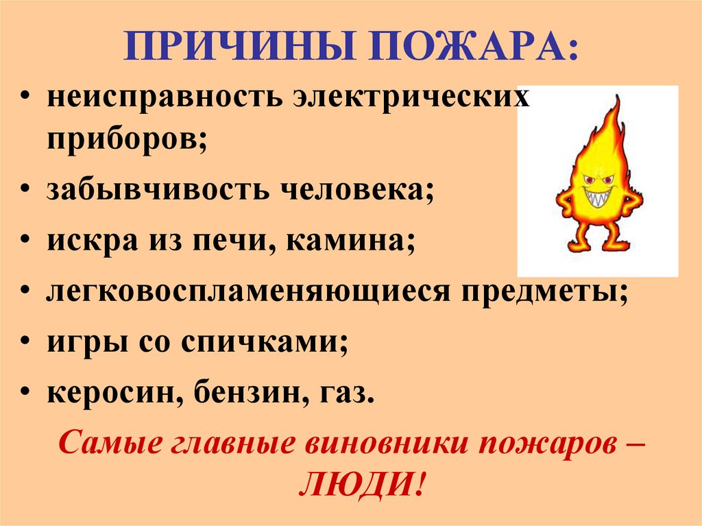 ПРИЧИНЫ ПОЖАРА:• неисправность электрических