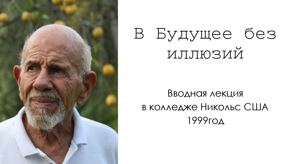 В Будущее без иллюзий. Вводная лекция в колледже Никольс США