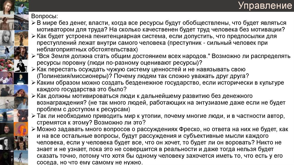 В мире без денег, власти, когда все ресурсы будут обобществлены, что будет являться
