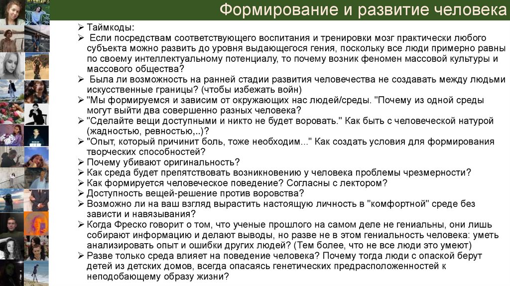 "Мы формируемся и зависим от окружающих нас людей/среды. "Почему из одной среды