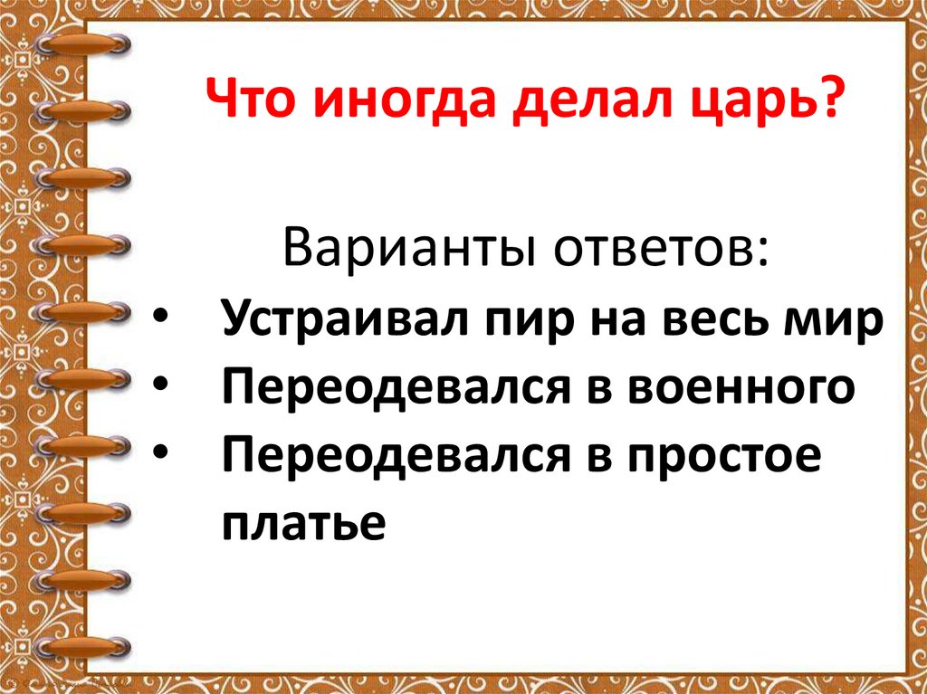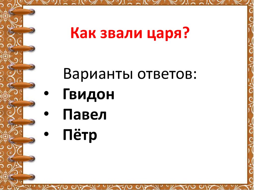 Как звали царя?Варианты ответов:
