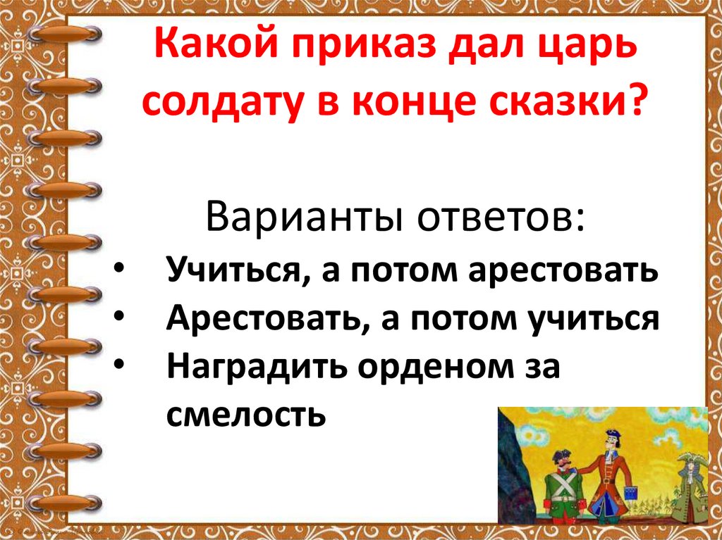 Какой приказ дал царьсолдату в конце сказки?