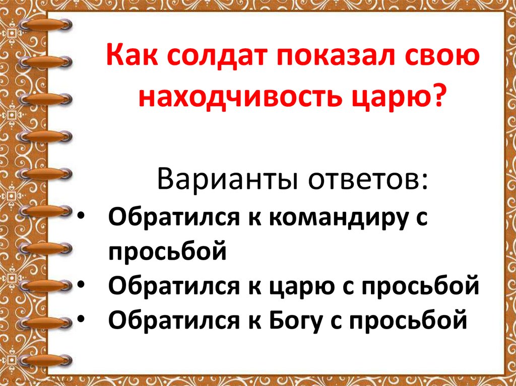 Как солдат показал своюнаходчивость царю?