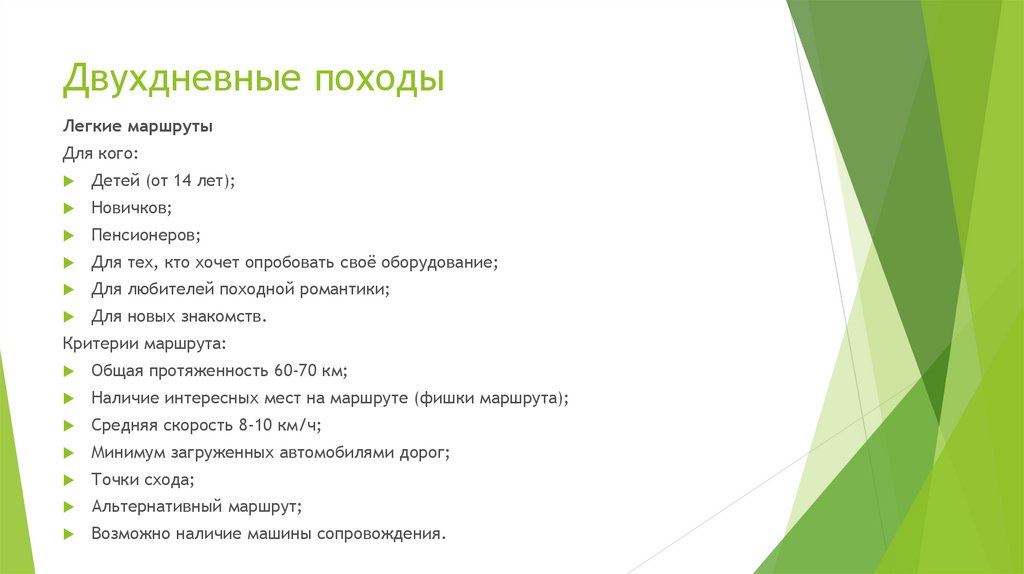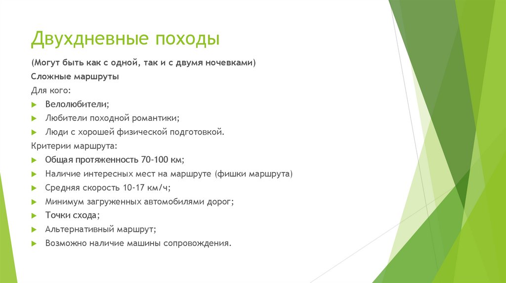 Двухдневные походы(Могут быть как с одной, так и с двумя ночевками)