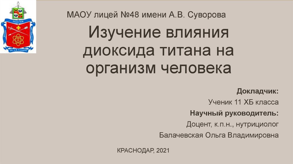 МАОУ лицей №48 имени А.В. СувороваИзучение влияния