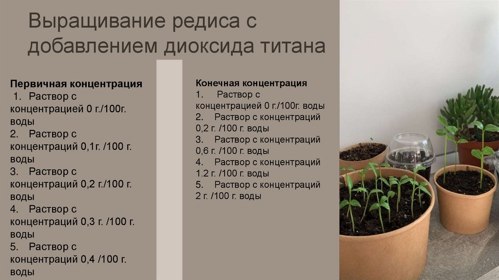 Выращивание редиса сдобавлением диоксида титана