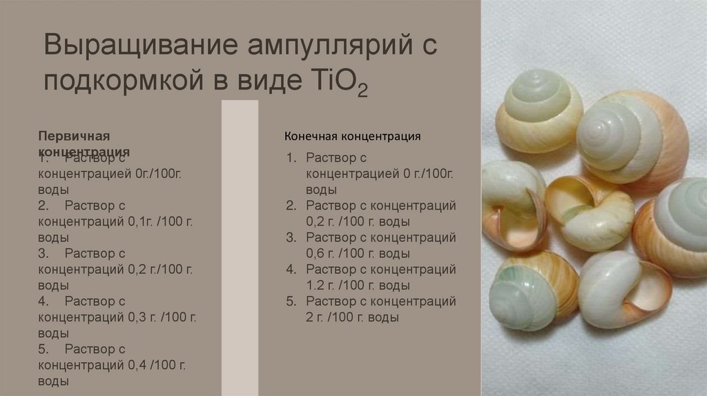 Выращивание ампуллярий сподкормкой в виде TiO2