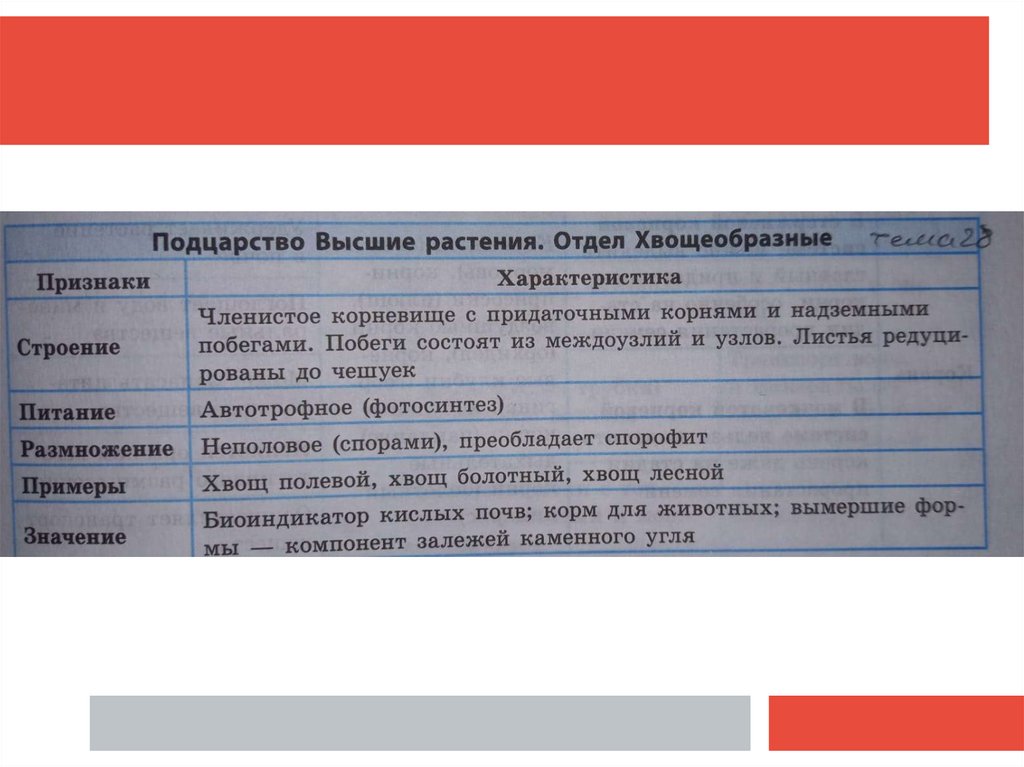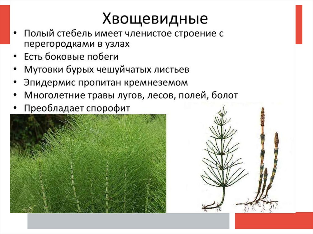 Отделы: Плауновидные, Хвощевидные, Папоротниковидные