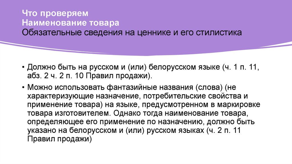 о товаре на русском и (или) белорусском языке. Сделать это он может в том числе на ценнике