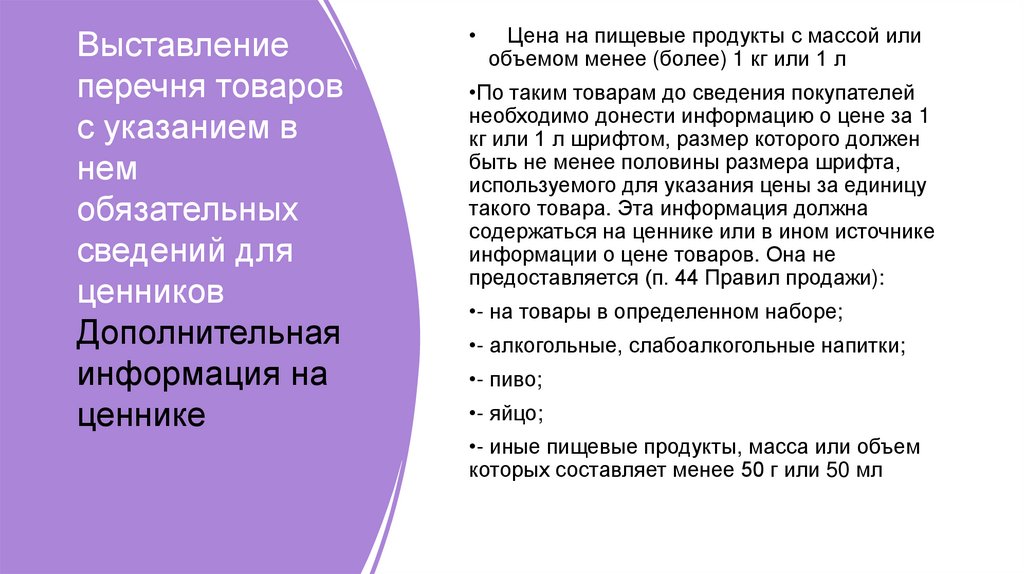 •Продавец может это сделать в том числе на ценниках. При этом требования к размеру шрифта