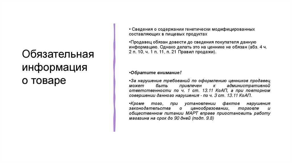 • Сведения о содержании генетически модифицированныхсоставляющих в пищевых продуктах