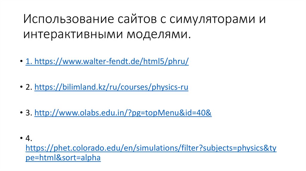 Использование сайтов с симуляторами иинтерактивными моделями.