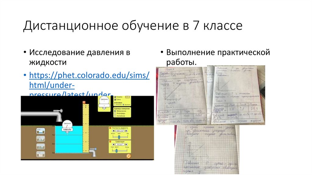 Дистанционное обучение в 7 классе• Исследование давления в
