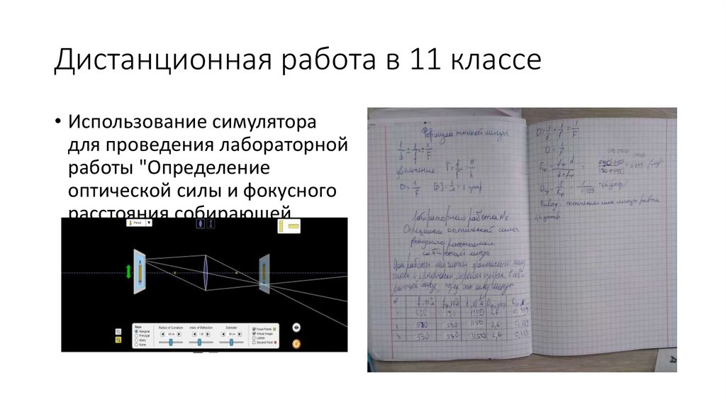 Дистанционная работа в 11 классе• Использование симулятора
