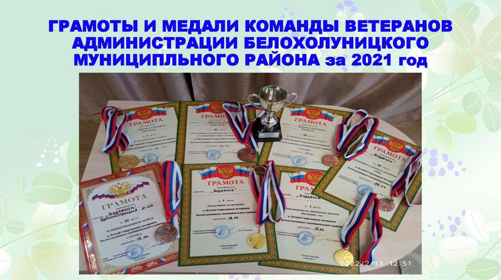 ГРАМОТЫ И МЕДАЛИ КОМАНДЫ ВЕТЕРАНОВАДМИНИСТРАЦИИ БЕЛОХОЛУНИЦКОГО