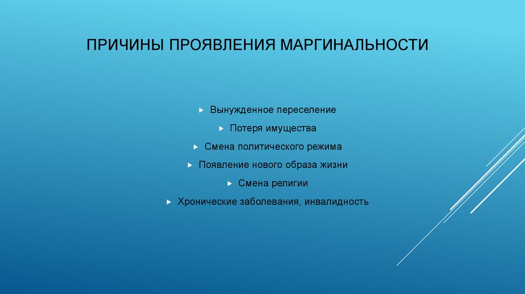 ПРИЧИНЫ ПРОЯВЛЕНИЯ МАРГИНАЛЬНОСТИВынужденное переселение