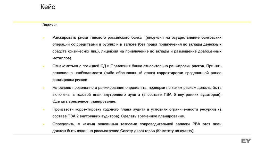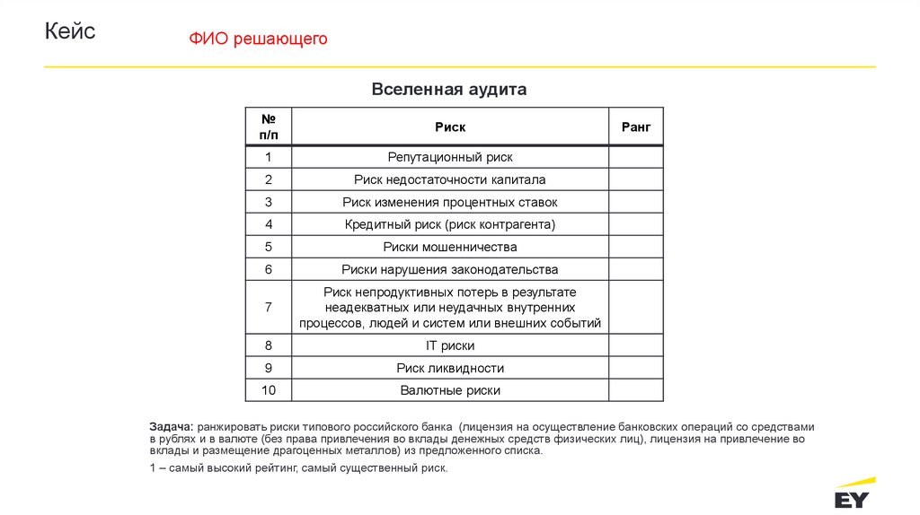 Задача: ранжировать риски типового российского банка (лицензия на осуществление банковских операций со средствами