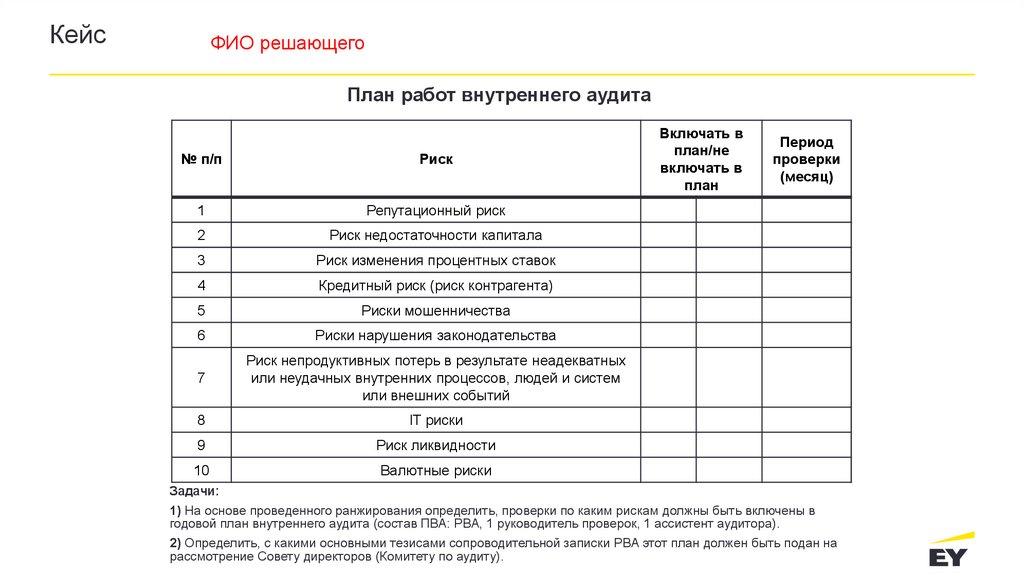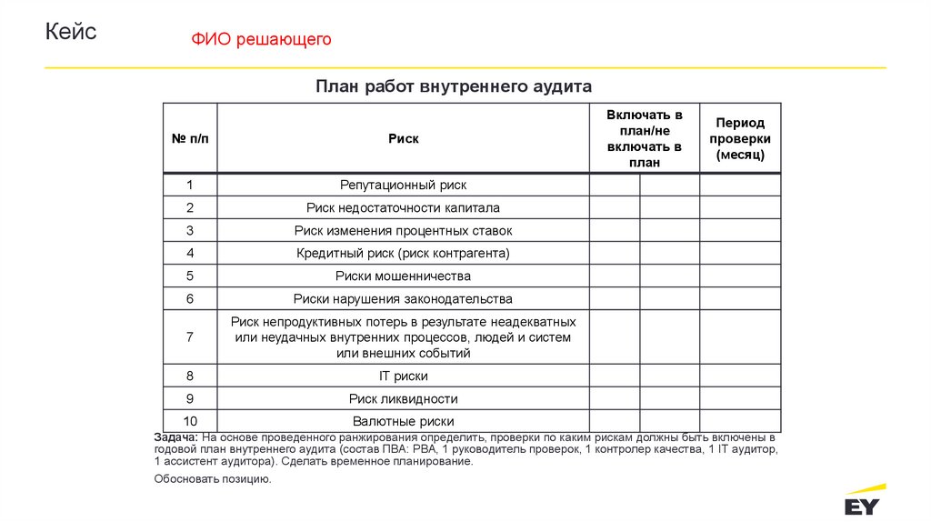 составе ПВА 2 внутренних аудитора). Сделать временное планирование.