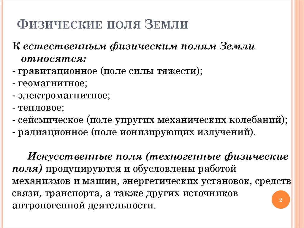 ФИЗИЧЕСКИЕ ПОЛЯ ЗЕМЛИК естественным физическим полям Земли