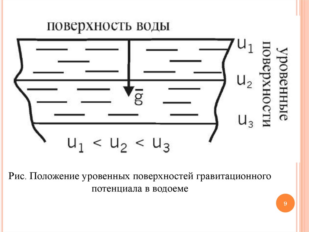 Рис. Положение уровенных поверхностей гравитационногопотенциала в водоеме