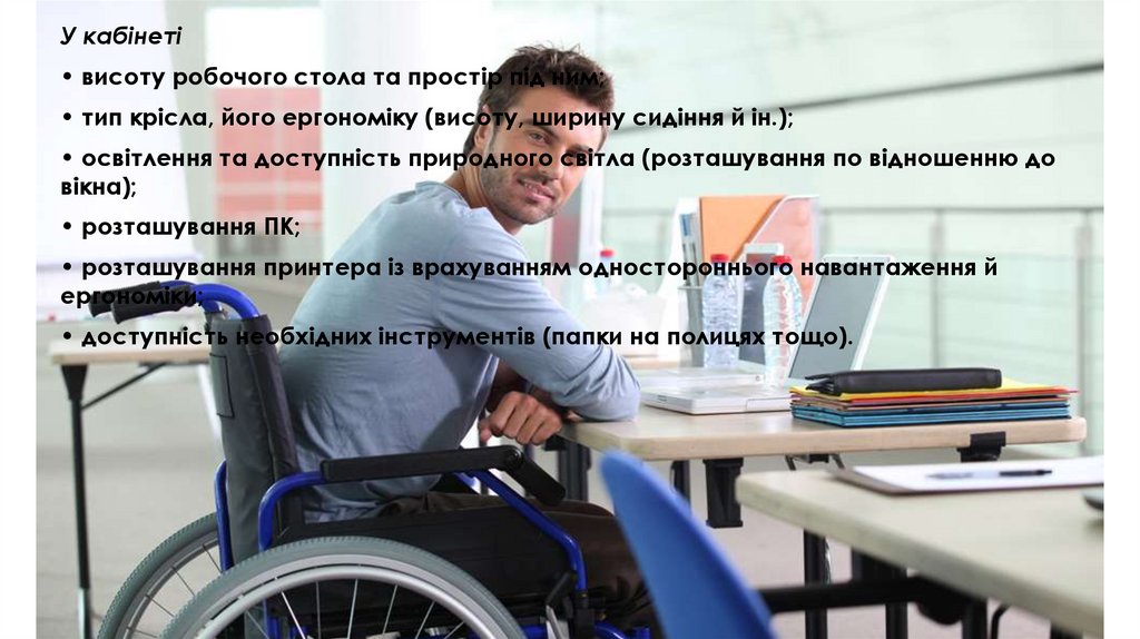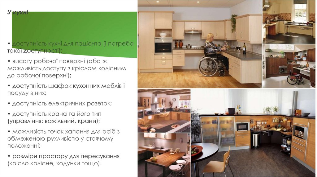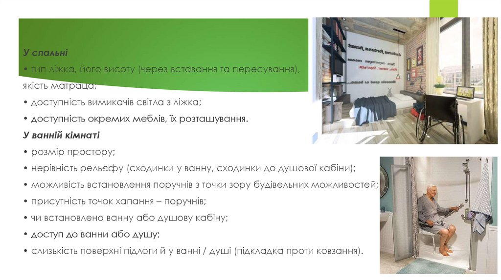 • доступність окремих меблів, полиць тощо.
