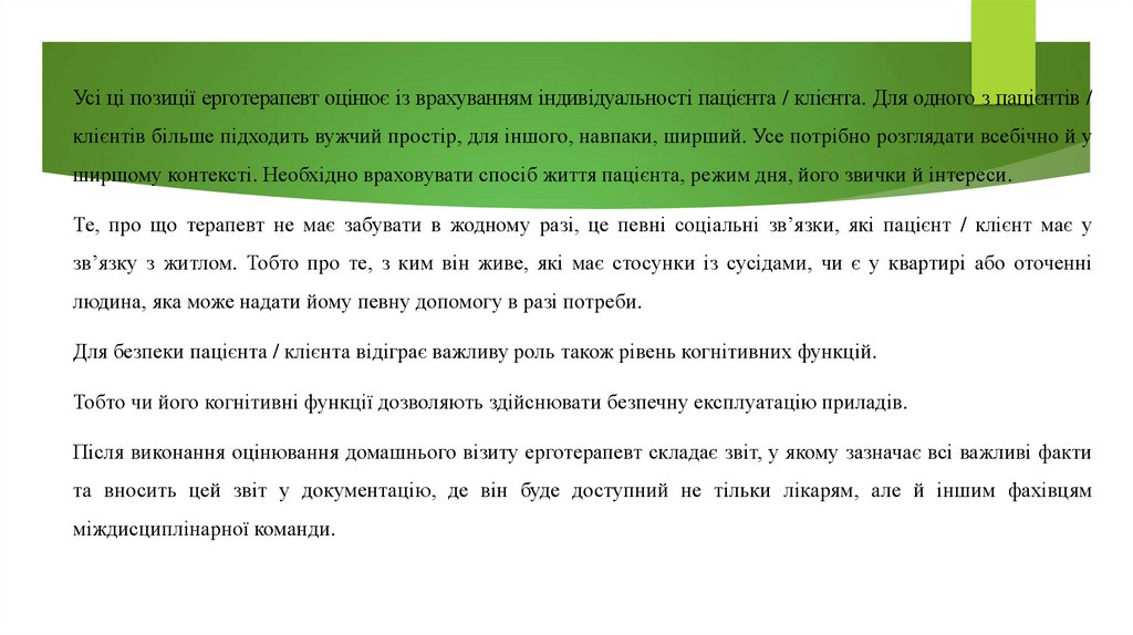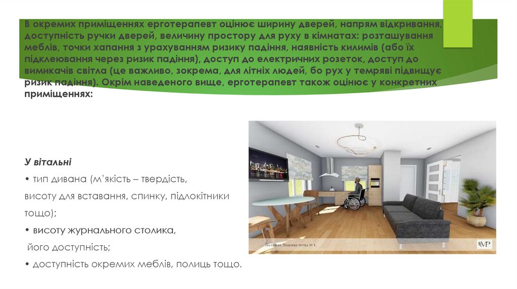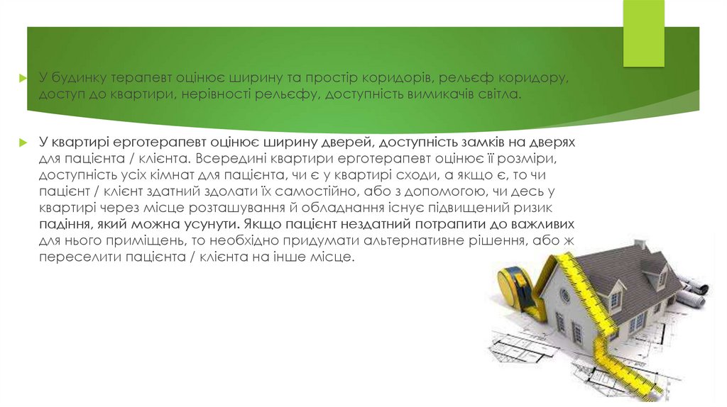 для пацієнта / клієнта. Всередині квартири ерготерапевт оцінює її розміри,