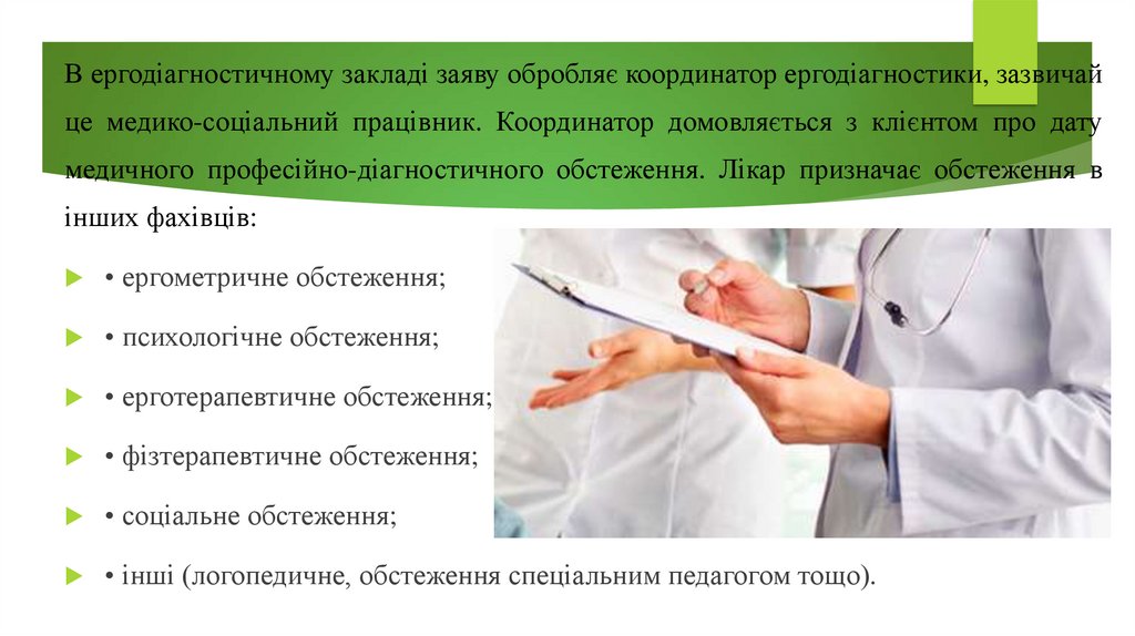 У межах процесу ергодіагностики своє незамінне місце посідають обстеження в окремих фахівців