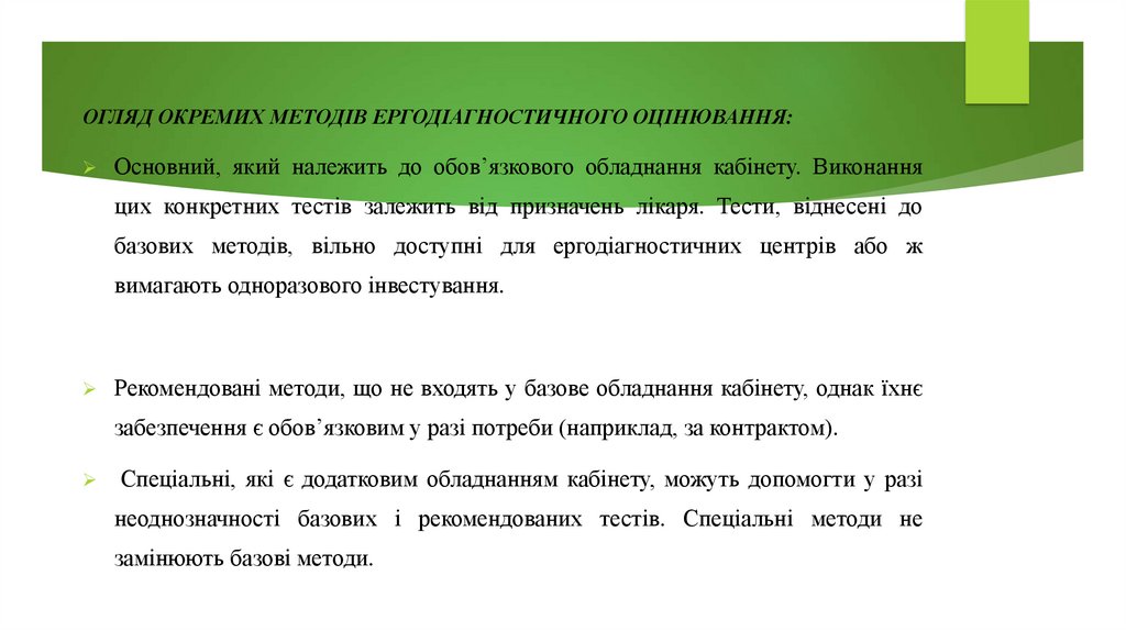 базових методів, вільно доступні для ергодіагностичних центрів або ж