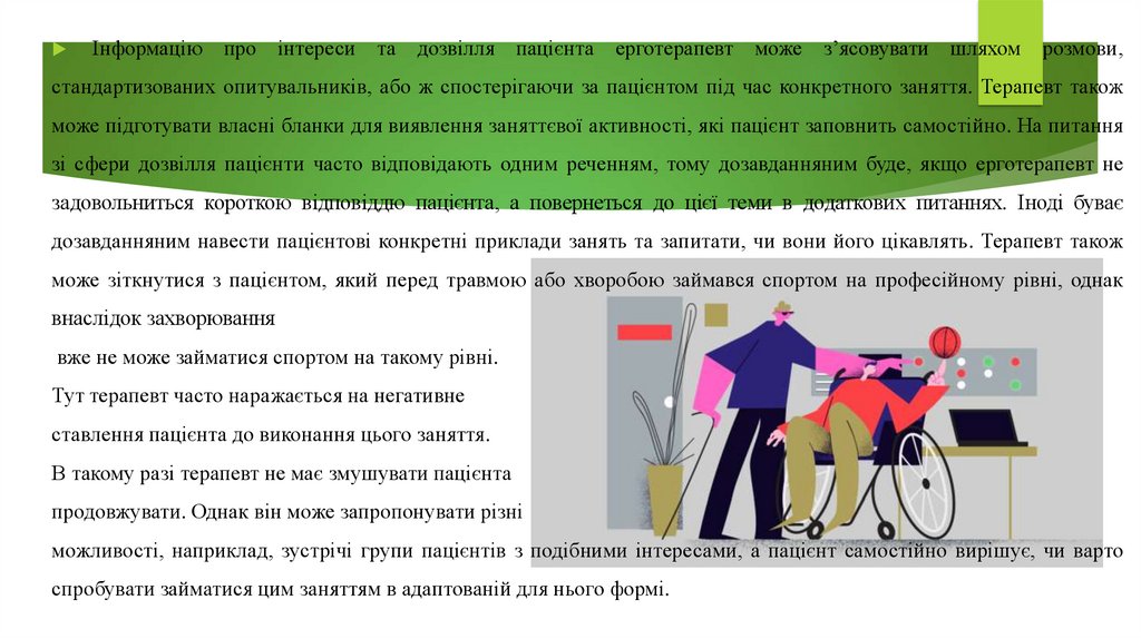 ерготерапії та почати вибудовувати довіру в стосунках з пацієнтом. Якщо в пацієнта
