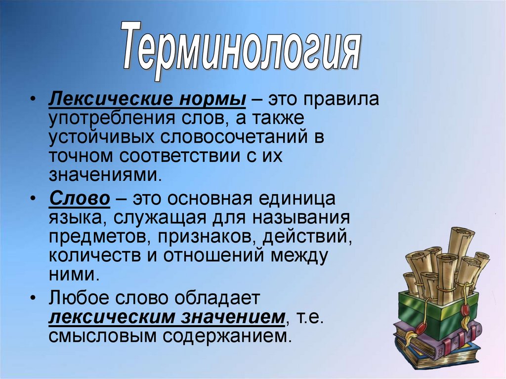 • Лексические нормы – это правилаупотребления слов, а также