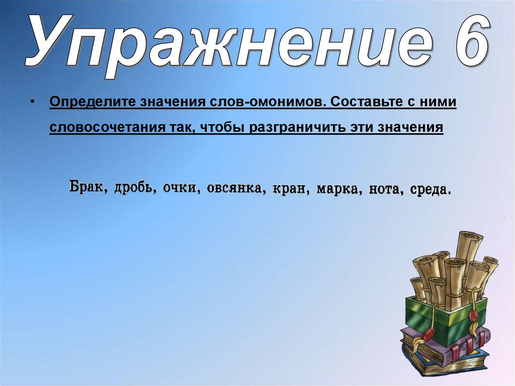 • Определите значения слов-омонимов. Составьте с нимисловосочетания так, чтобы разграничить эти значения