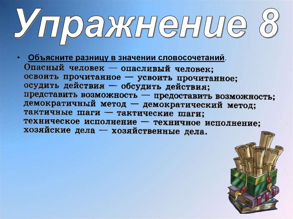 • Объясните разницу в значении словосочетаний.11.