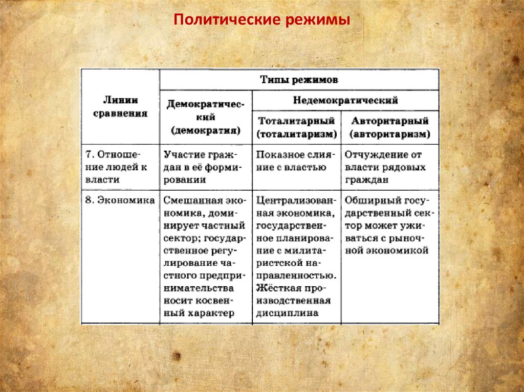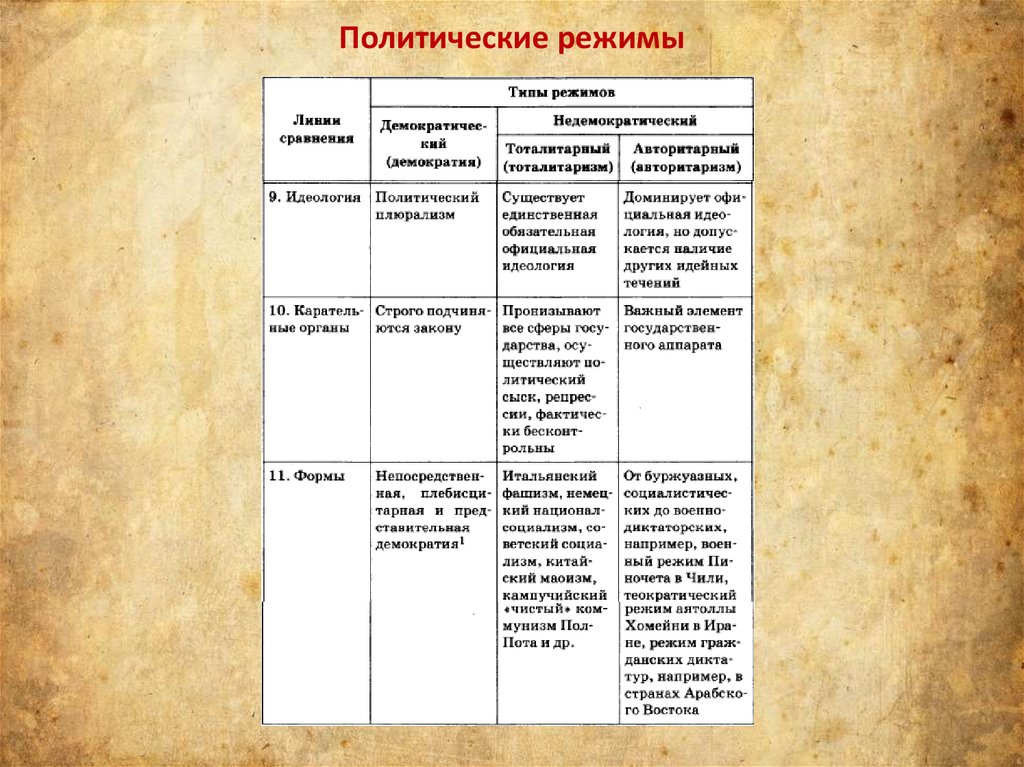 Политическая система и ее подсистемыПолитический режим – совокупность методов и способов осуществления в