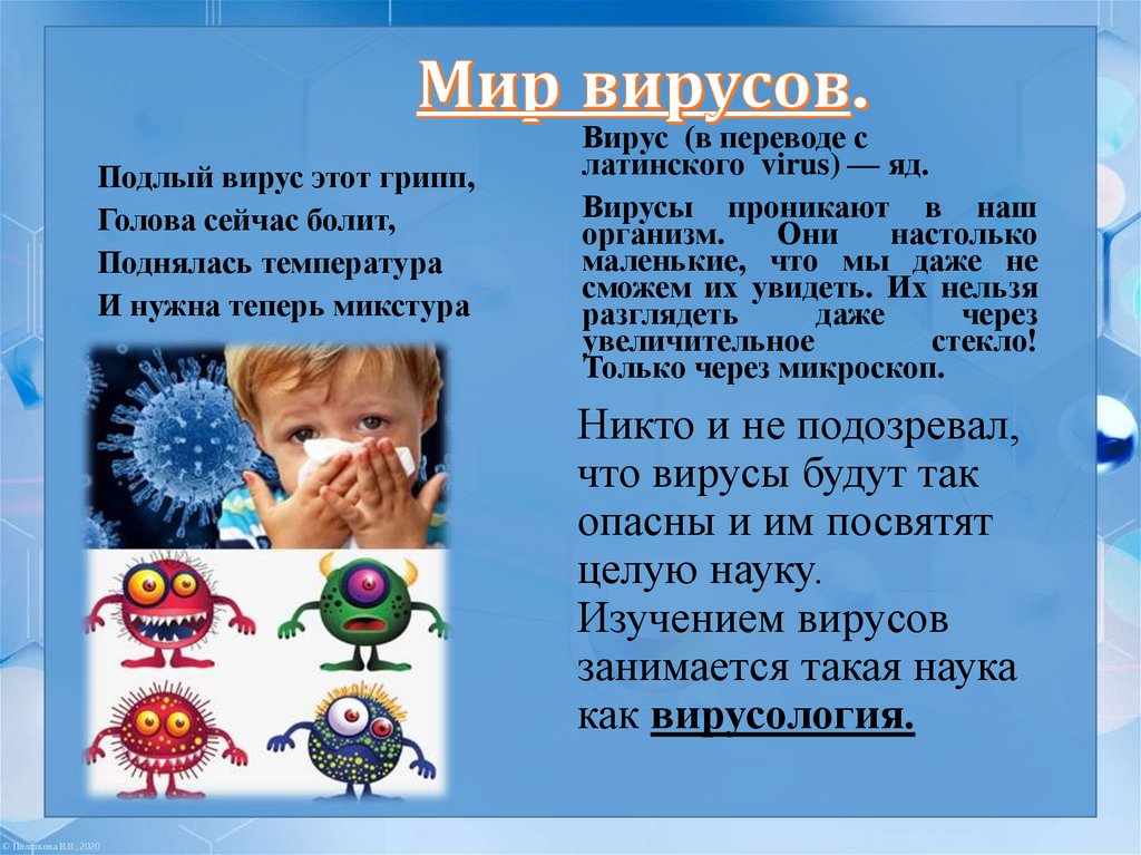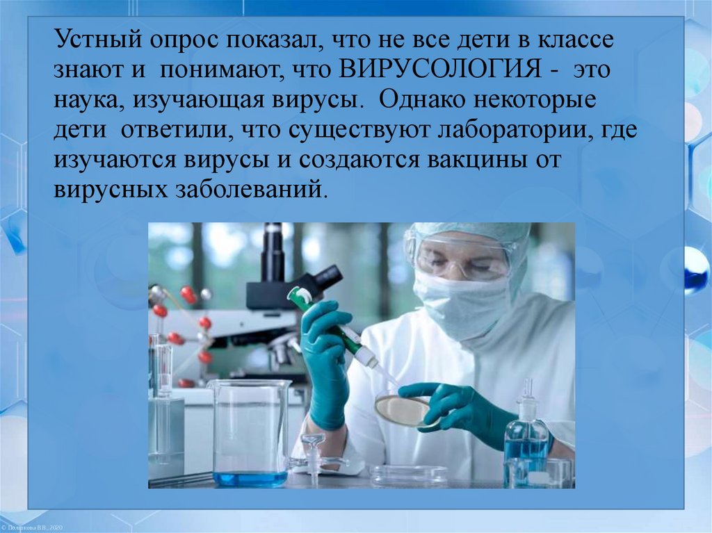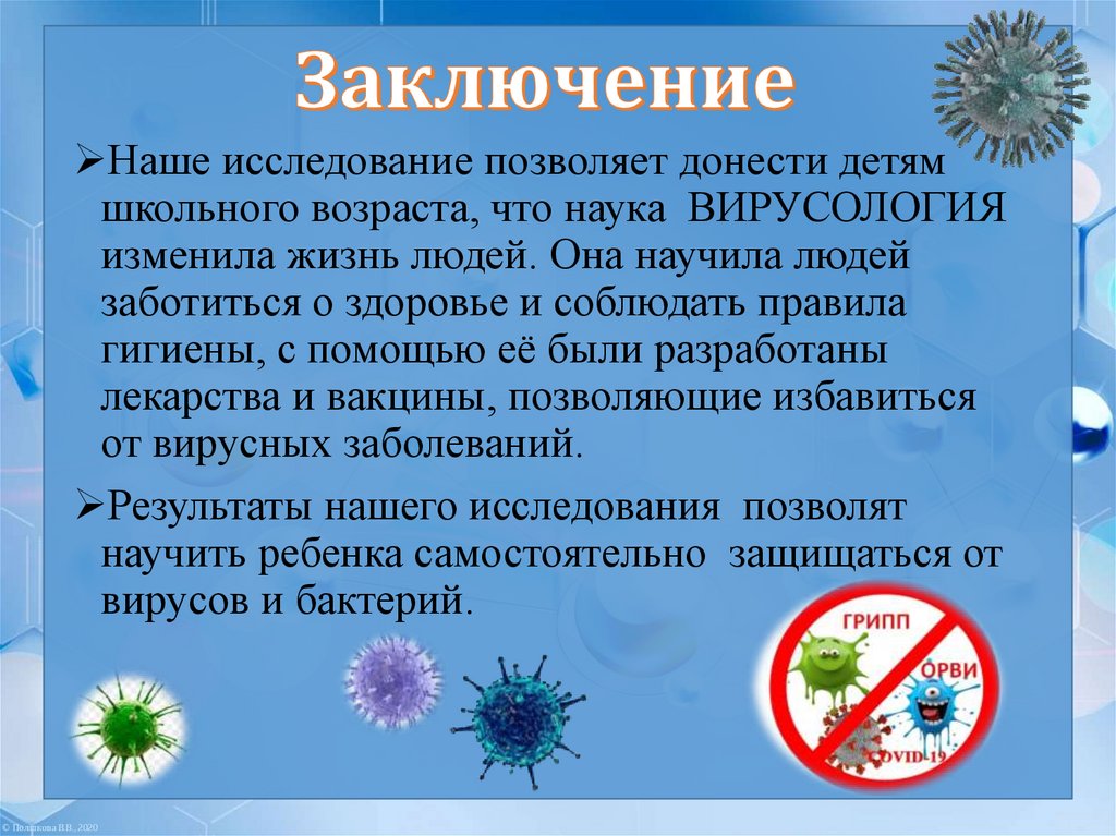 Наше исследование позволяет донести детямшкольного возраста, что наука ВИРУСОЛОГИЯ