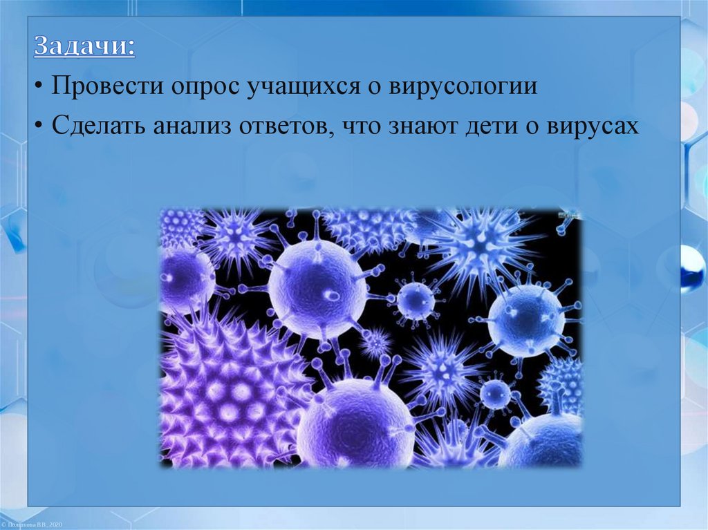 • Провести опрос учащихся о вирусологии• Сделать анализ ответов, что знают дети о вирусах
