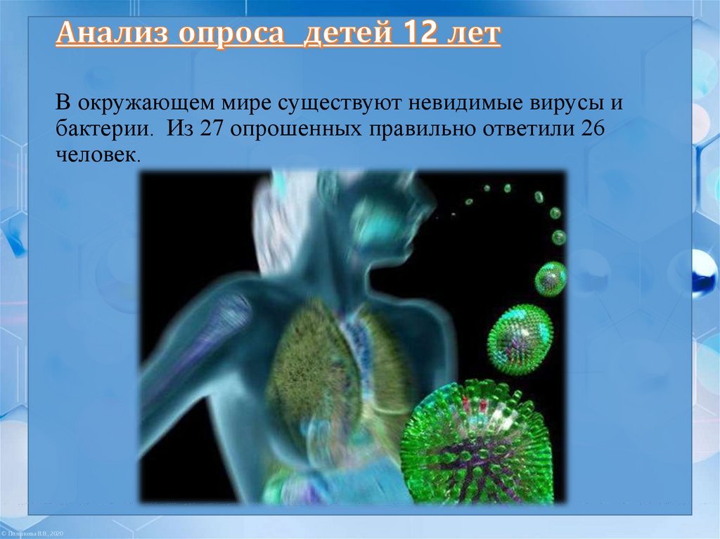 В окружающем мире существуют невидимые вирусы ибактерии. Из 27 опрошенных правильно ответили 26